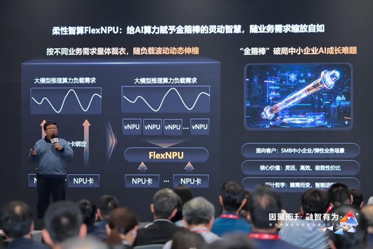 关于柔性智算FlexNPU,顾炯炯以可大可小、变化粗疏的“如意金箍棒”生动刻画,暗意FlexNPU赋予NPU/GPU算力“柔性或液态化”供继承伸缩的材干,可依据纵脱业务需求动态变化随需而动,如同金箍棒一般“可大可小、变化粗疏”,通过最大化AI算力干涉的运用率,最终兑现Token性价比的最优化。