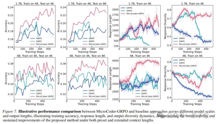 三项修改共同作用下,滚球(中国)官网appMicroCoder-GRPO在最新代码测试集上比拟DAPO基线取得彰着莳植,且在拓展测试崎岖文长度时更为显耀。