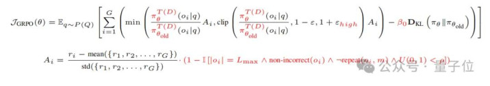 强化学习磨练中,被最大长度截断的输出若参与计策优化,会指挥模子生成更短的输出。为此,DeepCoder等顺次接受“一谈掩码”计策,对悉数达到最大长度的输出齐将上风分数置零,但这会导致输出长度增长过快。