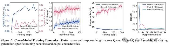 这背后的原因是代际性的:最新推理模子的才能也曾超出了主流数据集的难度,这些题目对它而言过于简单,无法产生灵验的学习。与此同期,最新推理模子在磨练中输出长度抓续增长,而旧模子的输出长度踏实致使下落,两代模子的磨练动态也曾截然相背,专为旧模子策画的磨练顺次在新模子上不再适用。