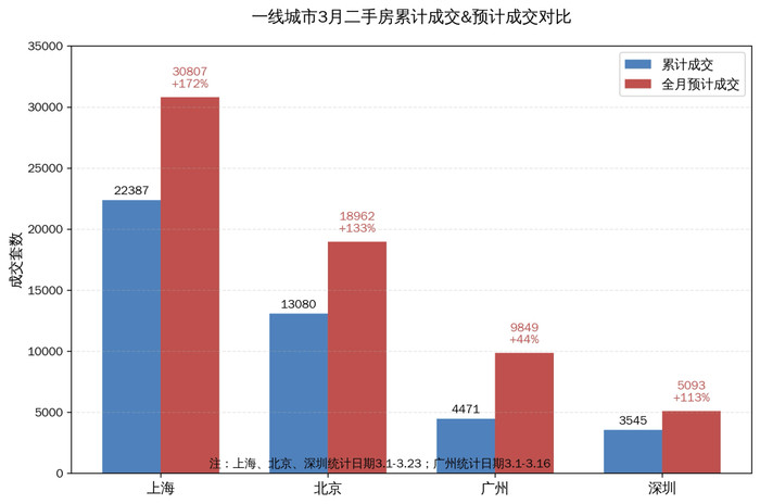 扫尾3月22日,上海二手房成交量已飙至21443套,全月冲刺3万套大关基本无悬念,这一数据大幅刷新往年同期记载。