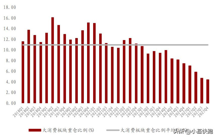 公募基金2025年四季报骄慢,大破钞板块基金重仓比例已降至4.41%,远低于2018年以来10.94%的历史均值。