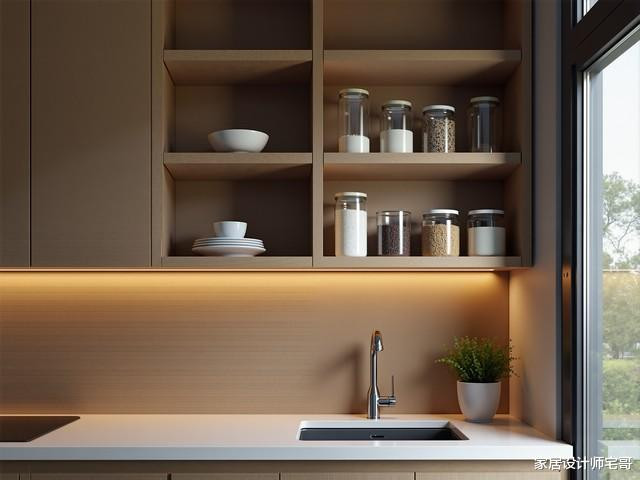 在厨房吊柜下方加一条灯带,切菜的时期确实很粗拙。