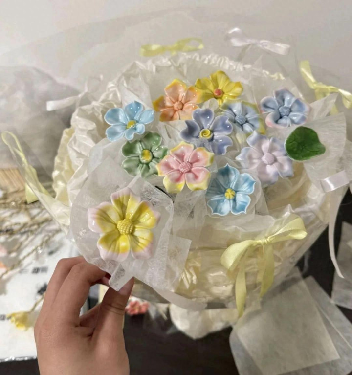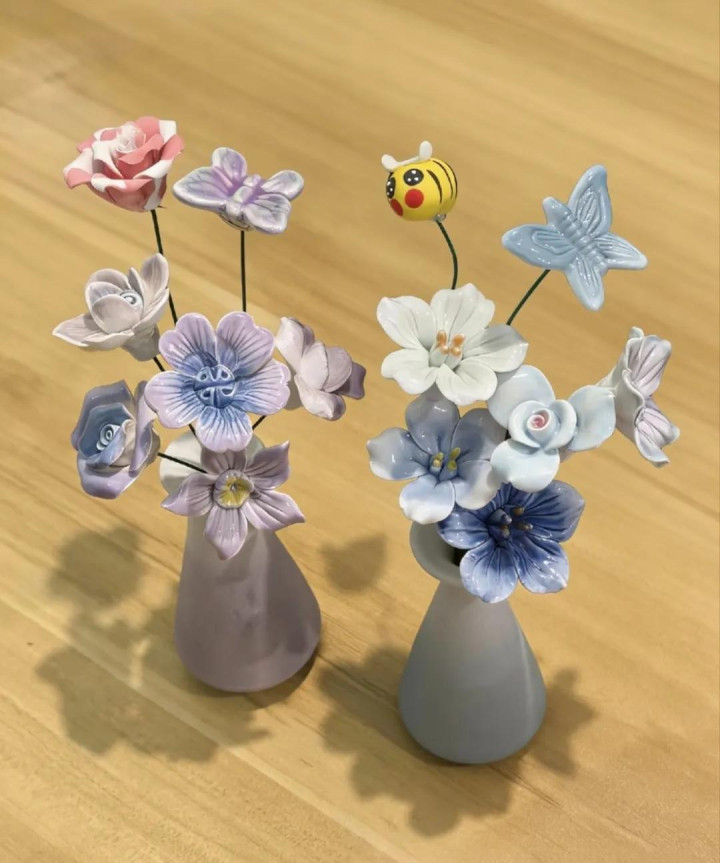 真花雕零得太快,假花又少了些真意,那不如试试景德镇的陶瓷小花—釉色莹润,姿态清简,十来块便能得好几支。