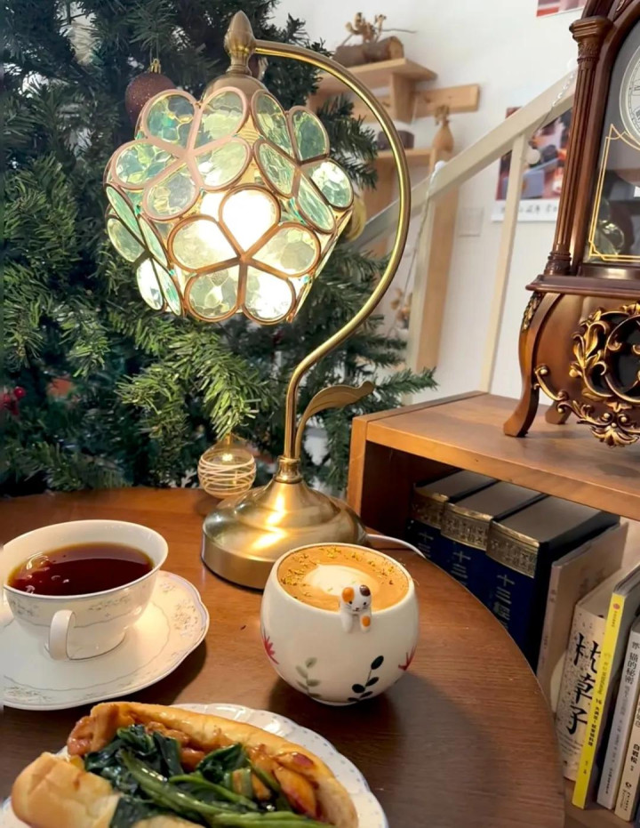 对持台灯见过不少,这款是最让东谈主难以忘怀的,灯罩是花瓣步地的,像是拼接起来的,造型私有,金属的灯架及底座,一眼看去,对持风十足。