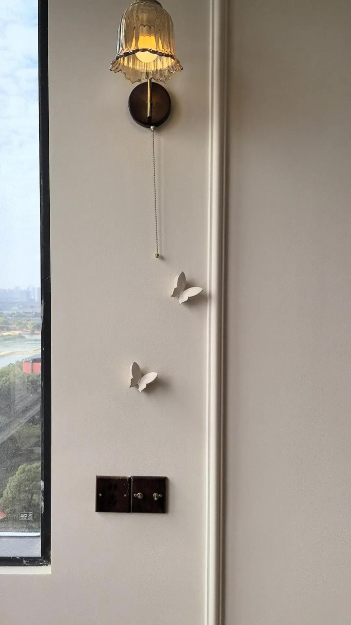 作念法也很肤浅,批腻子的时间,2遍腻子之后,就不错让油工师父用石膏粉把小蝴蝶粘上墙了,临了刷漆时再用小号羊毛刷均匀涂刷即可。