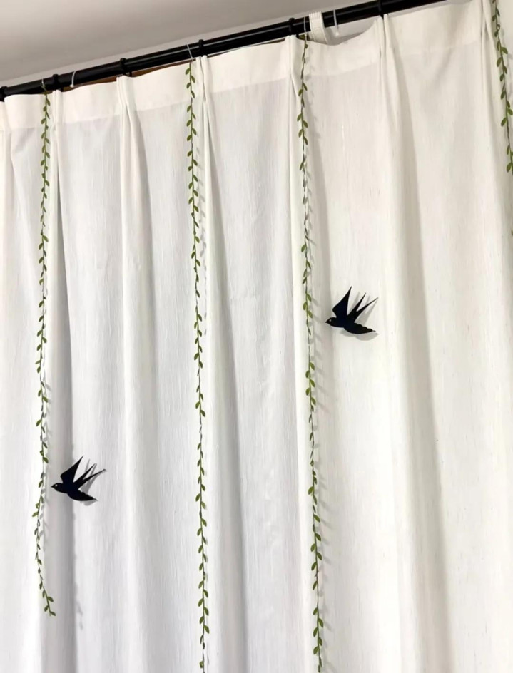 若嫌单调,还不错买一些仿真叶子挂上去,再搭配上几只小燕子,窗帘便有了我方的故事。