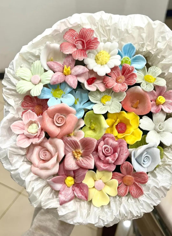 念念起之前有一又友生宝宝,怕鲜花对宝宝不好,就买了陶瓷花,多巴胺同样的神采,宝妈如获至宝。