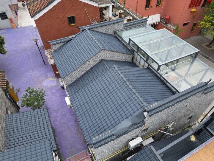 合成树脂瓦以入口高耐候ASA工程树脂为上层、全新PVC为基材,通过共挤工艺一体成型,遗弃传统瓦材自若、易顽固的缺点,兼具多重上风。它质轻坚定,分量仅为陶土瓦的1/10,大幅减弱屋面承重,且装置方便,可缩小施工周期;防水隔音性能出众,无缝拼接谋略打算阻绝渗漏,能灵验远隔暴雨、大风产生的杂音,晋升居住与使用情愿度。